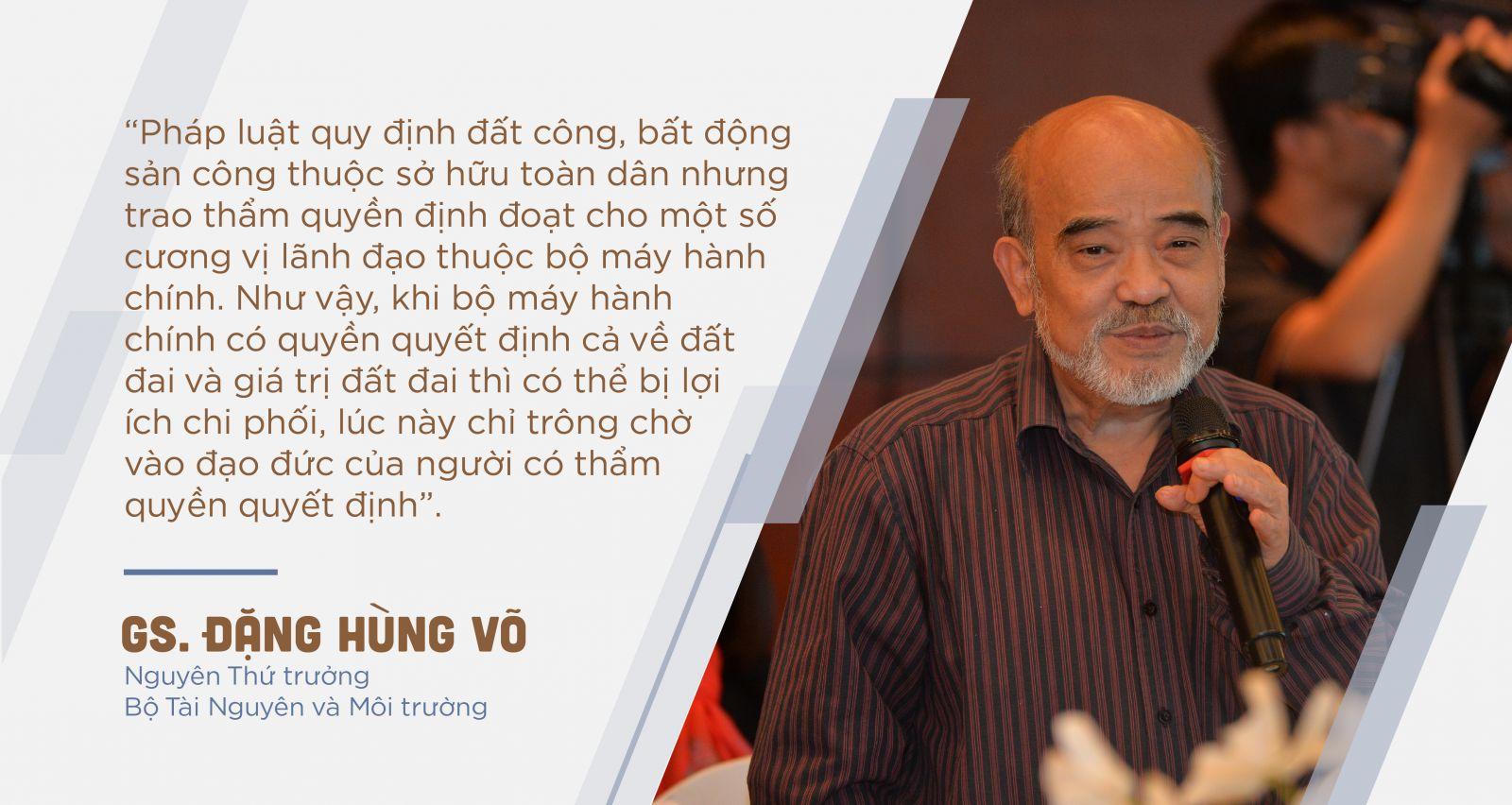 Theo ông Võ: “Pháp luật quy định đất công, bất động sản công thuộc sở hữu toàn dân nhưng trao thẩm quyền định đoạt cho một số cương vị lãnh đạo thuộc bộ máy hành chính. Như vậy, khi bộ máy hành chính có quyền quyết định cả về đất đai và giá trị đất đai thì có thể bị lợi ích chi phối, lúc này chỉ trông chờ vào đạo đức của người có thẩm quyền quyết định. Trong cả lý luận và thực tiễn, người ta đã chỉ ra rằng rủi ro tham nhũng luôn xuất hiện tại những nơi mà quyền lực quyết định không được kiểm soát, nhất là khi thực thi quyền quyết định tạo ra được lợi ích cho một nhóm người nào đó”.