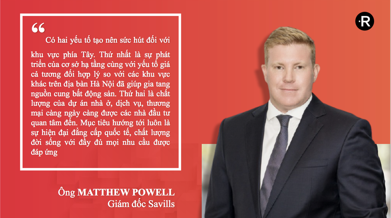 Theo đánh gia thực tế, khu phía Tây đã có những phân khúc các khu căn hộ cao cấp có thể kể đến như : The Matrix One, The Zei,…một số những dự án lớn có thể kể đến như Vinhomes Green Bay, TNR Goldmark City , Gateway Tower,…Đây cũng là khu vực biểu tượng cho tốc độ phát triển của Hà Nội khi các dự án bất động sản thu hút lượng lớn cư dân có nguồn tài chính dồi dào chuyển về sinh sống, qua đó góp phần nâng tầm giá trị cho khu vực. Hiện nay, hạ tầng khu Tây phát triển mạnh mẽ, tác động mạnh và thúc đẩy thị trường BĐS tại các quận huyện Hà Đông, Mỹ Đình, Nam Từ Liêm, Hoài Đức, Hòa Lạc sôi động và tạo sức lan tỏa đến cả Xuân Mai, Lương Sơn (Hòa Bình).