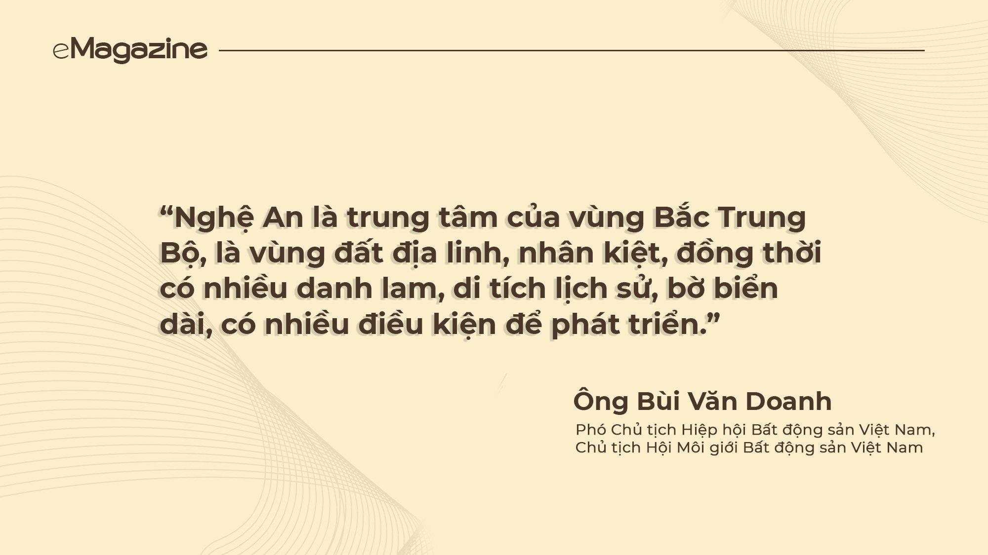 Sự góp mặt của những doanh nghiệp lớn trong ngành bất động sản như: Vingroup, T&T, FLC, EuroWindow Holding, Công ty CP Tập đoàn Tân Á, TDH Ecoland, Lotte Group, TNR Holdings,… chính là tấm thẻ VIP quyền lực đưa Nghệ An từ một thị trường phát triển muộn nhanh chóng bứt phá quỹ đạo, gia nhập những thị trường mới nổi giàu tiềm năng trên bản đồ bất động sản trong nước.