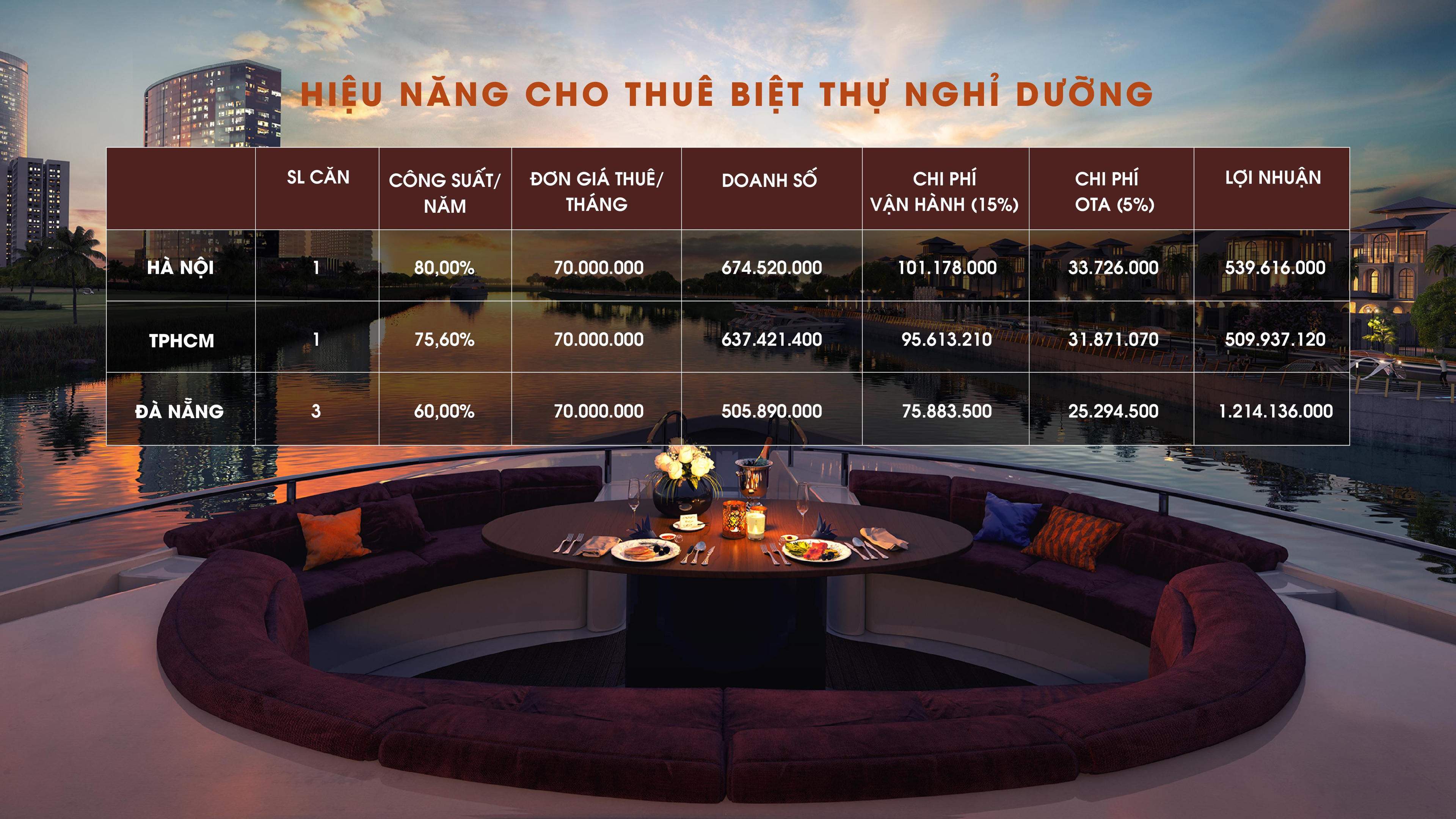 Tương tự với cùng gói đầu tư, các chi phí và giá cho thuê hàng tháng, chủ sở hữu căn biệt thự có cùng diện tích tại khu đô thị Saigon Pearl, TPHCM sẽ có được lợi nhuận khoảng 510 triệu đồng/năm.