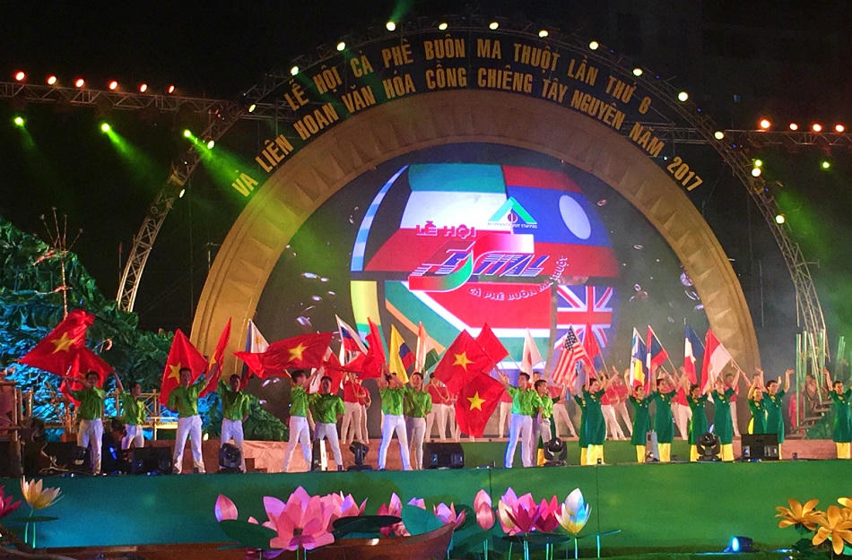 | Trình diễn văn nghệ trong Lễ hội cà phê Buôn Ma Thuột lần thứ 6 với chủ đề “Hội tụ tinh hoa – Phát huy bản sắc – Liên kết phát triển”. |