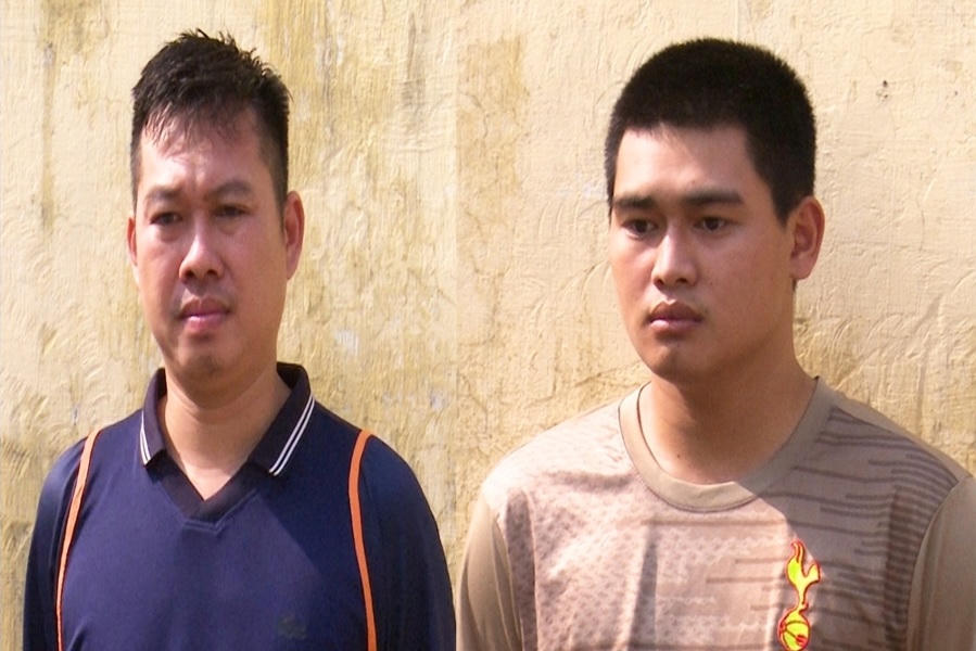 Bị can Mai Thanh Tèo ( bên trái ) và Lâm Thanh Phúc. |