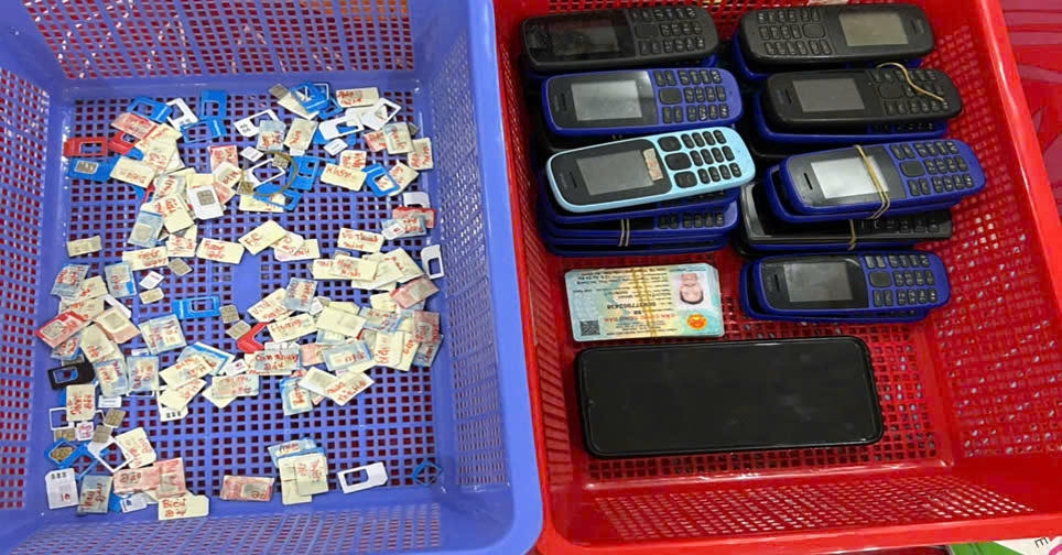 Tiến hành khám xét khẩn cấp chỗ ở của Hồng, Cơ quan Công an đã thu giữ số lượng lớn sim và điện thoại di động đã qua sử dụng.