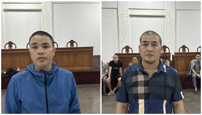 Đối tượng Lê Xuân Thành (ảnh phải) và Lê Thanh Trầm. Ảnh: CAHT |