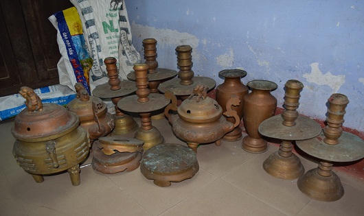 Tại cơ quan Công an, đối tượng Đức khai nhận, trước đó, tại nhà thờ họ Mai, thị trấn Phú Đa, huyện Phú Vang, tỉnh Thừa Thiên- Huế lợi dụng đêm tối, không có người trông coi, Đức đã mang theo một thanh sắt đến cạy cửa và đột nhập vào bên trong lấy trộm 3 bộ lư, 4 chân đèn nến và hai bình hoa, tất cả đều bằng đồng rồi đem về nhà cất giấu.