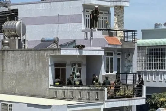 Lực lượng chức năng tiếp cận từ lầu 2 ngôi nhà để khống chế đối tượng Dương Hữu Trí |