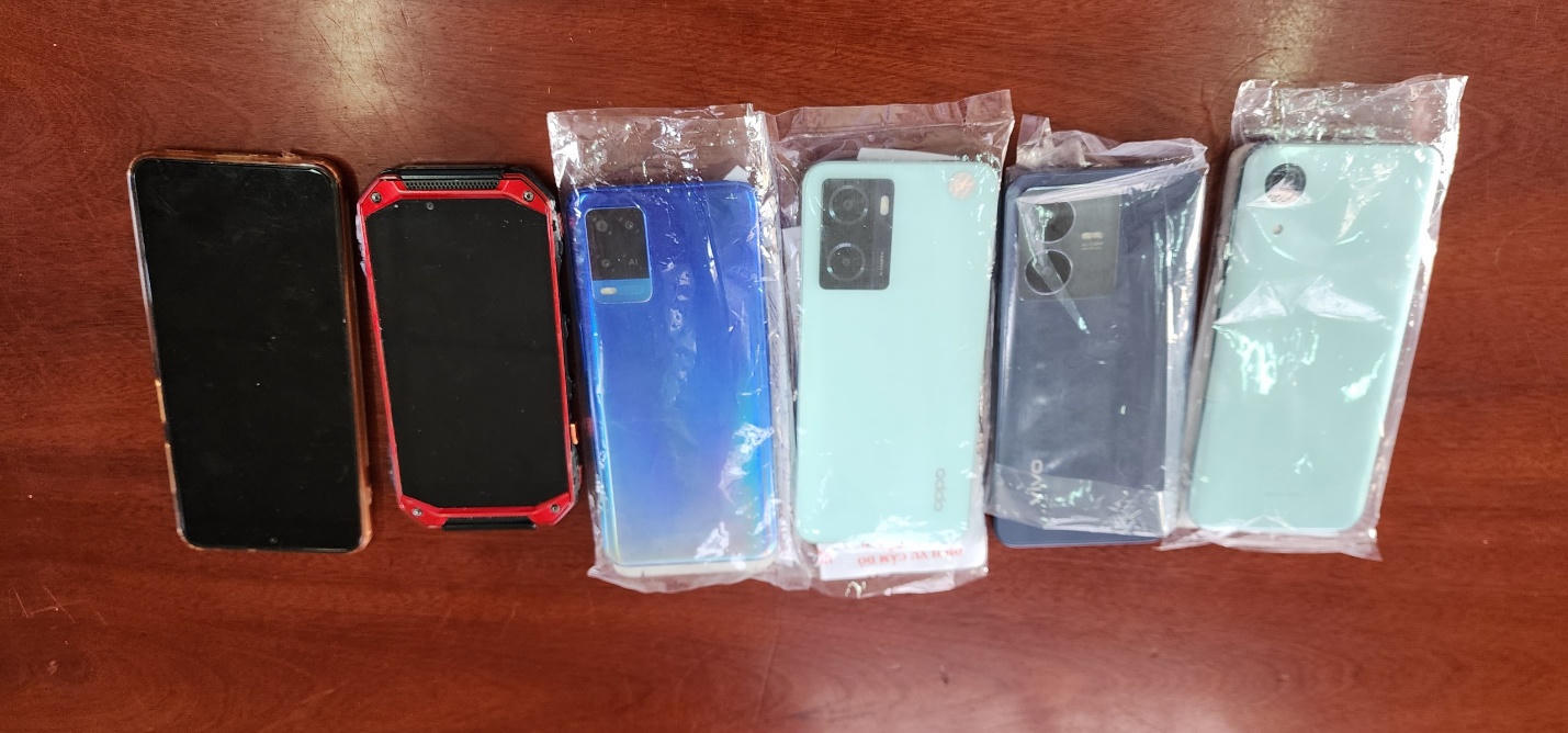 Công an đã thu hồi được 06 chiếc điện thoại mà Tiến lấy trộm của người dân tại bệnh viện rồi mang đi cầm cố |
