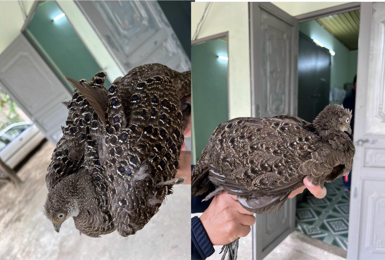 Tang vật thu giữ là 2 cá thể gà Tiền mặt vàng (thuộc danh mục động vật rừng nguy cấp, quý hiếm cần được ưu tiên, bảo vệ).