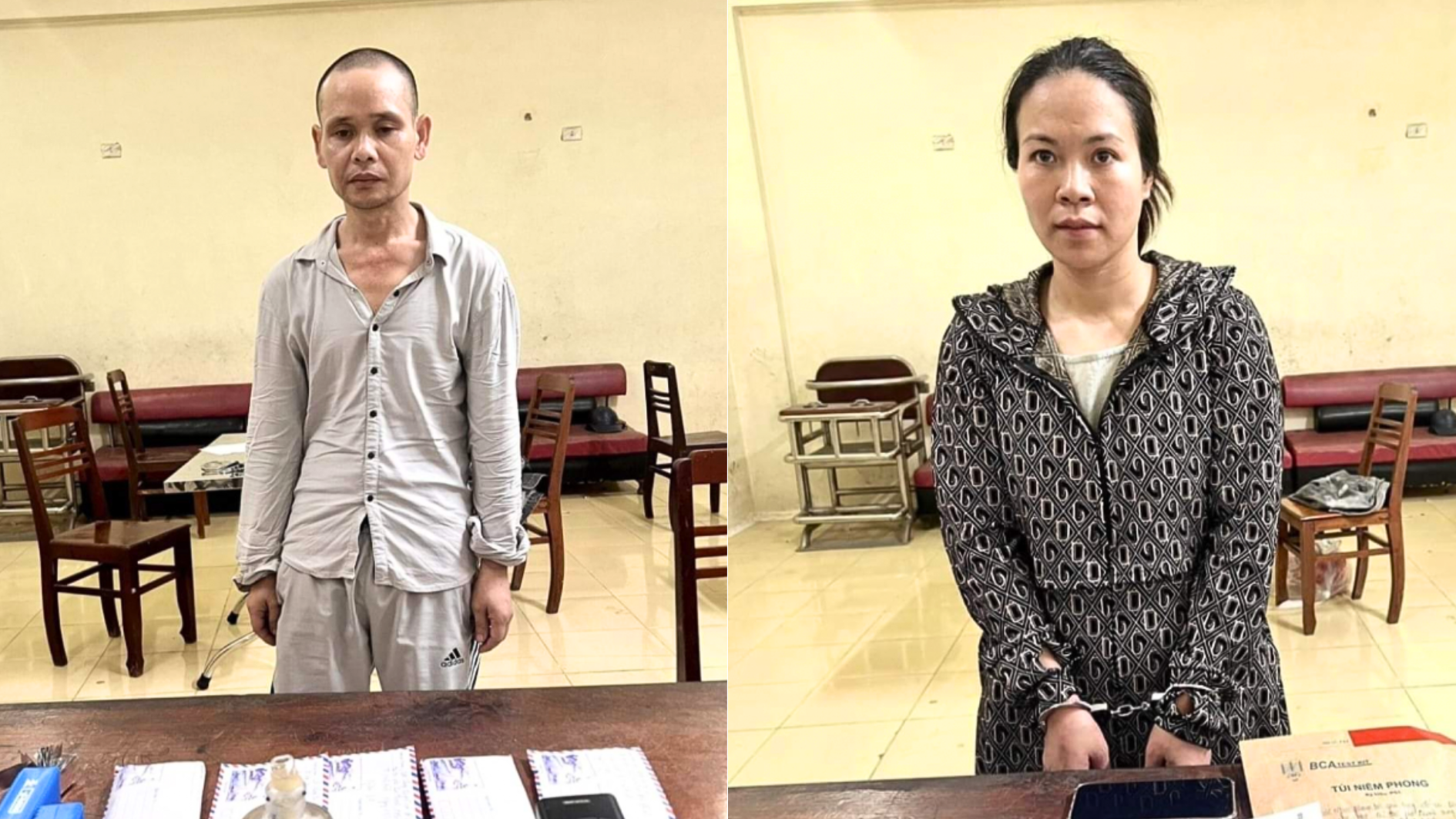 Đối tượng Phạm Thị Hoa và Đỗ Văn Lợi tại cơ quan Công an |