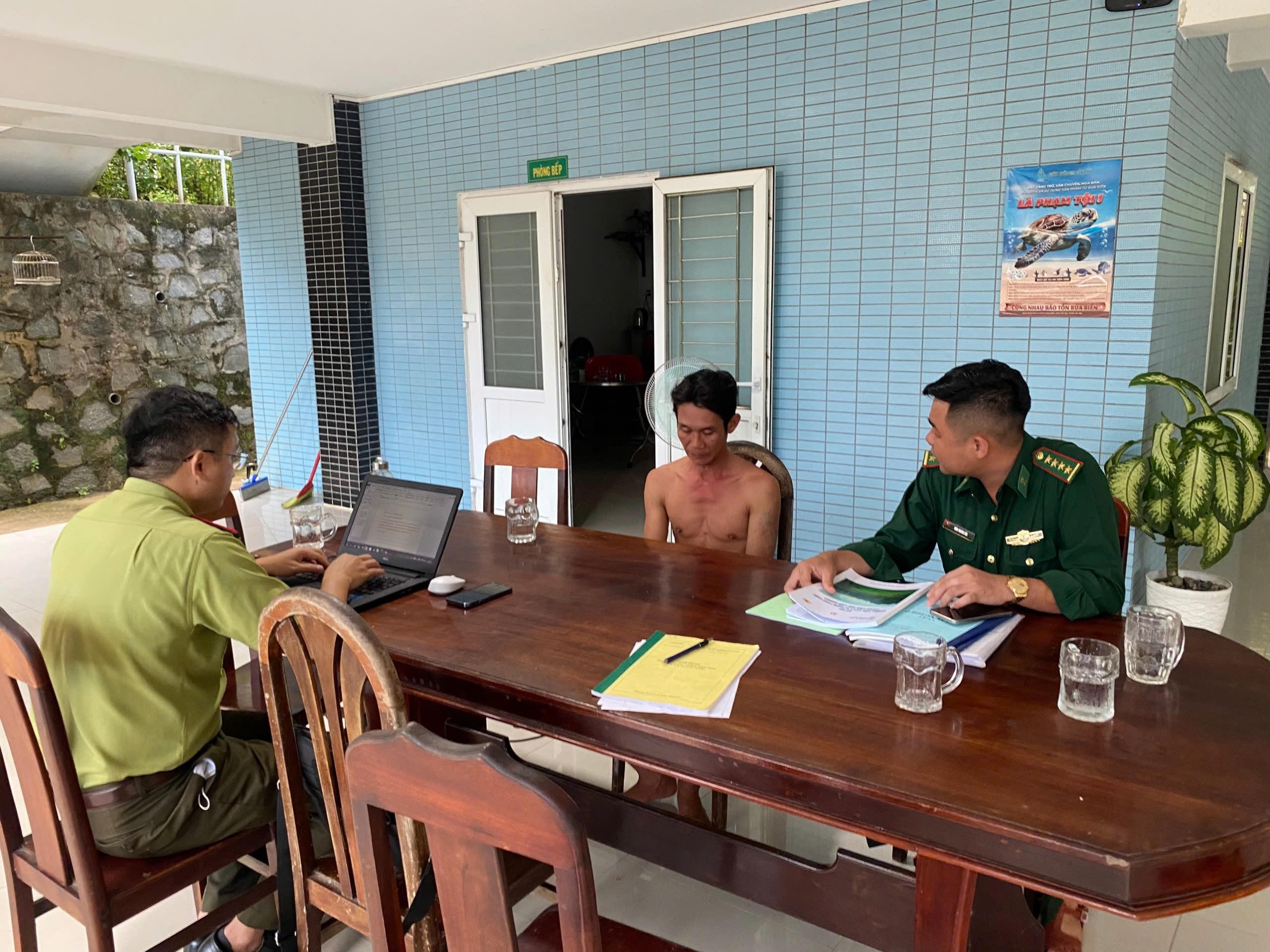 Lực lượng Kiểm lâm Bến Đầm và Đồn Biên phòng Côn Đảo làm việc với đối tượng N.M.Ph. |