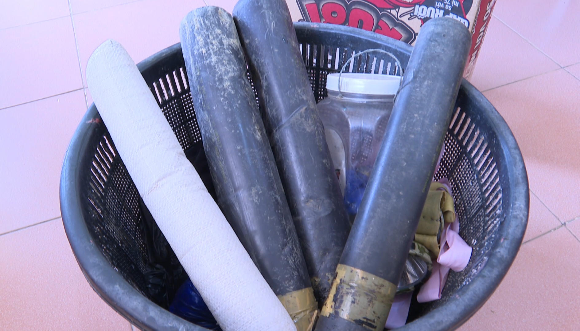 Kiểm tra tại hiện trường, các lực lượng chức năng thu giữ 2 quả mìn tự gói, 4 thỏi thuốc nổ (có trọng lượng 1,2kg), 4 kíp và 6 đoạn dây cháy chậm.