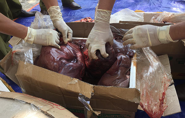 Bắt giữ gần 3 tạ nội tạng hôi thối đang trên đường vào Nam tiêu thụ