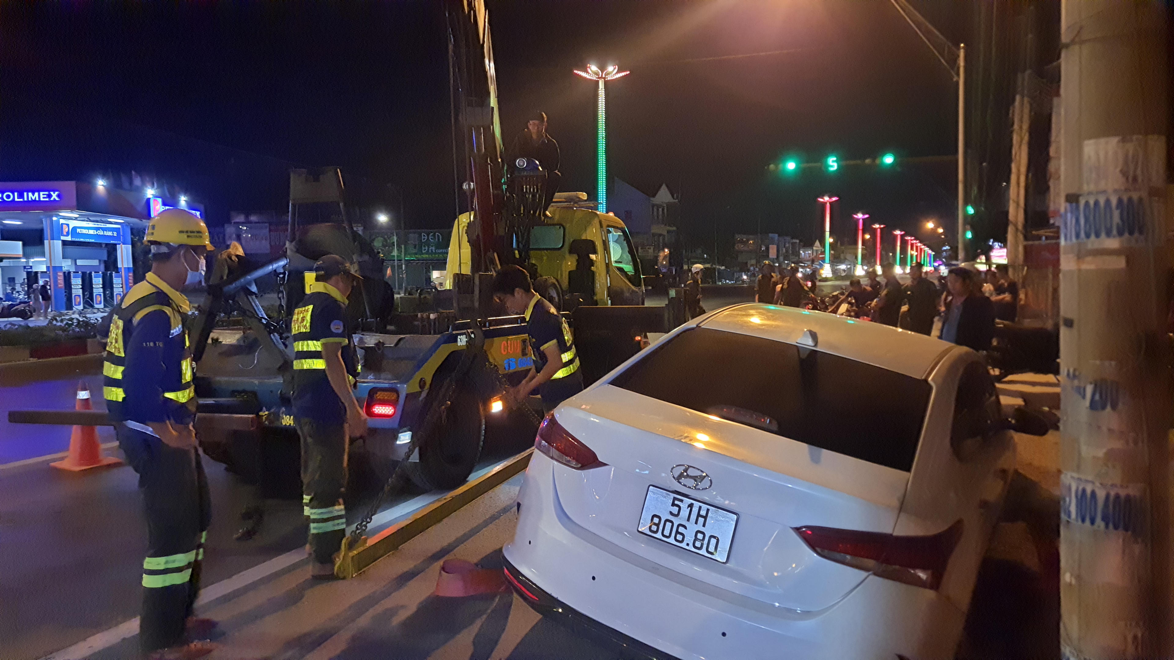 Tuy nhiên, tài xế không chấp hành mà bất ngờ tăng ga bỏ chạy. Cùng thời điểm trên, do trên đường có rất nhiều phương tiện đang dừng chờ đèn đỏ nên xe 4 chỗ lao xuống mé đường và không thể tiếp tục di chuyển được. Hai thanh niên trên xe bung cửa bỏ chạy thì bị cảnh sát khống chế bắt gọn.