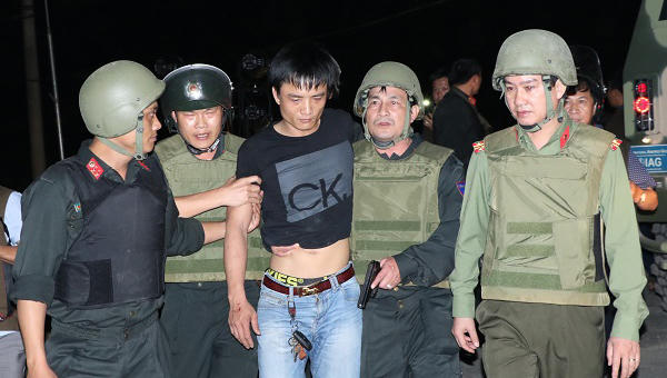 Sau nhiều nỗ lực, đến 19h15, đối tượng còn lại là Nguyễn Thành Trung đã buông vũ khí, đầu hàng. Được biết, Trung là kẻ bị nhiễm HIV từng có 1 tiền án 9 năm tù về tội tàng trữ trái phép chất ma túy.