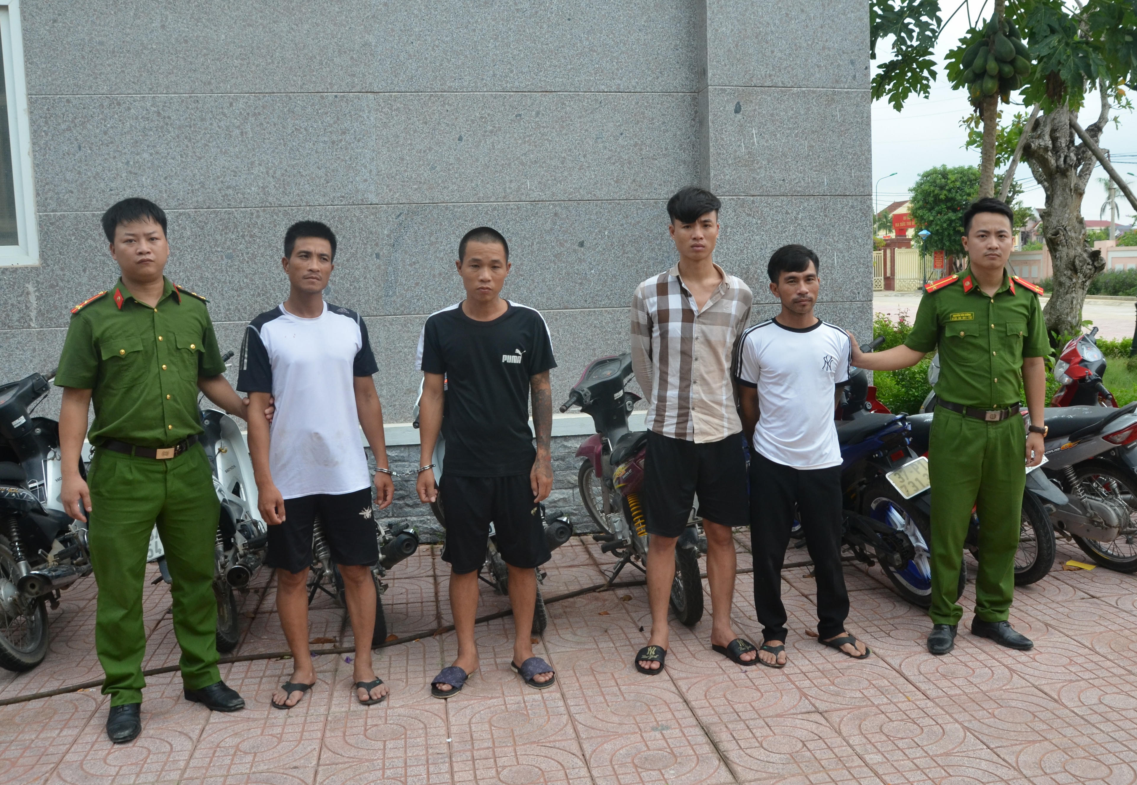 Sau quá trình đấu tranh, theo dõi, đến 13h ngày 6/9/2020, Công an huyện Yên Thành tiến hành bắt giữ 3 đối tượng có hành vi trộm cắp tài sản gồm: Lê Thanh Quân, Nguyễn Hữu Năm (SN 1987, trú xã Diễn Bích, huyện Diễn Châu), Trần Văn Ngợi (SN 1987, trú xã Diễn Ngọc, huyện Diễn Châu).