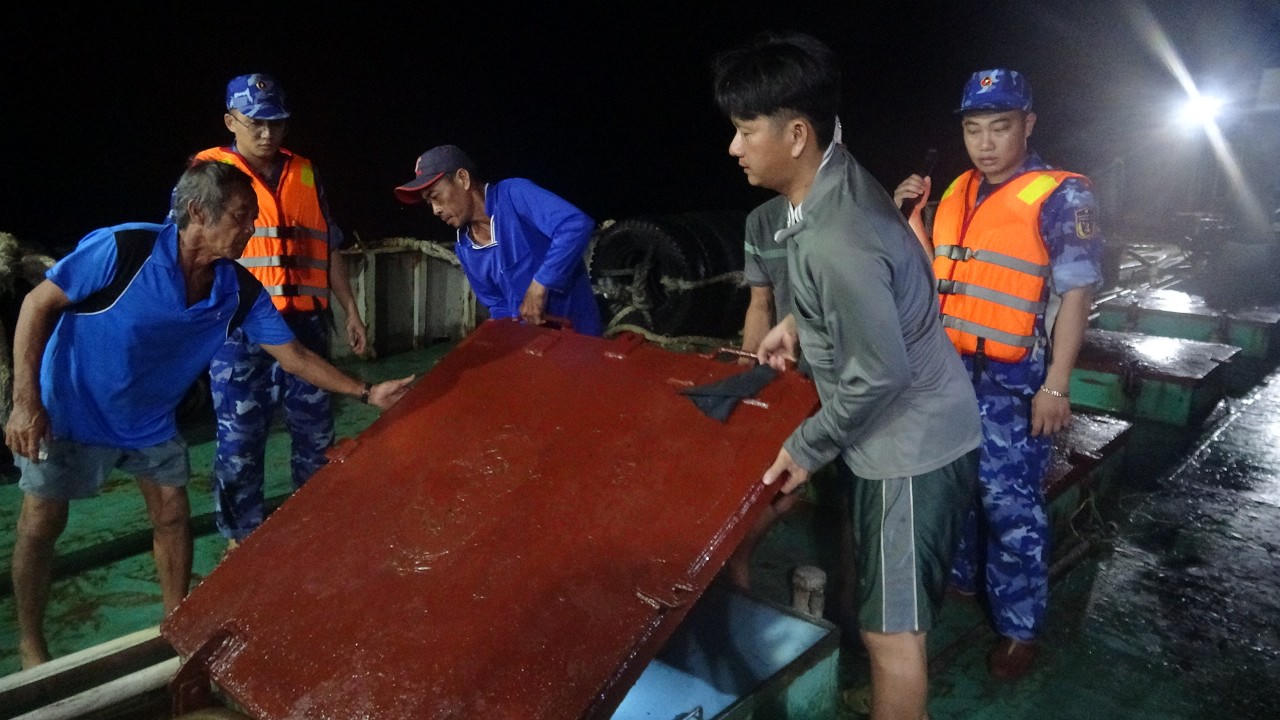 Lực lượng chức năng tiến hành kiểm tra trên tàu. |