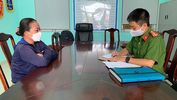 Đối tượng Phan Thị Mỹ Linh tại Cơ quan điều tra. |