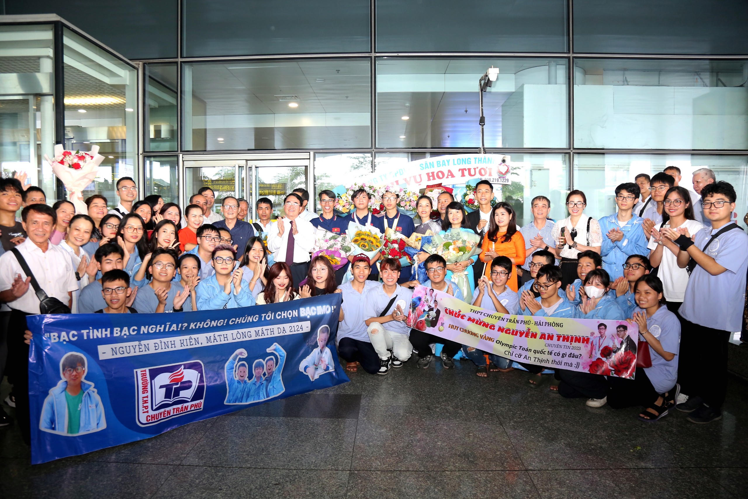 Lãnh đạo TP Hải Phòng chào đón chủ nhân của những tấm huy chương IMO 2023. |