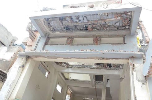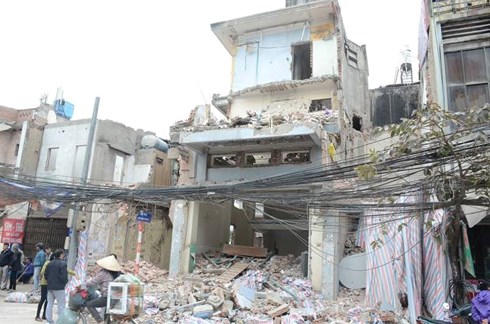 Theo nhân chứng cho biết, thời điểm trên có một nhóm công nhân đang giải phóng mặt bằng căn nhà 3 tầng ở số 407 thuộc phố Minh Khai.