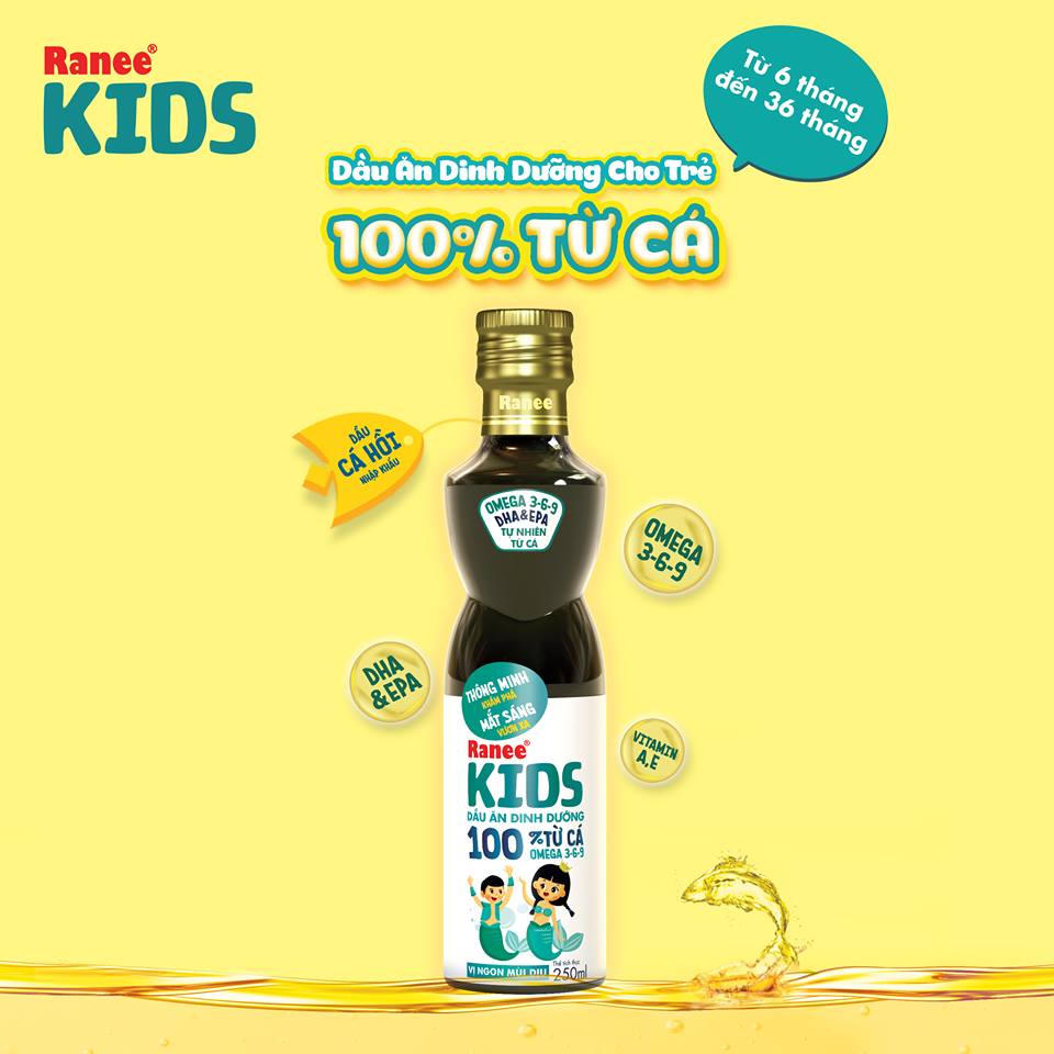 Dầu ăn dinh dưỡng Ranee KIDS là sự kết hợp hoàn hảo giữa dầu cá tinh luyện và dầu cá hồi nhập khẩu giàu dưỡng chất DHA, EPA, Omega 3-6-9, Vitamin A và các loại a-xít béo tự nhiên từ cá giúp bé phát triển não bộ, sáng mắt, tăng cường hấp thu dinh dưỡng từ bữa ăn, cung cấp năng lượng cho sự phát triển toàn diện, góp phần cải thiện tình trạng trẻ suy dinh dưỡng, thiếu cân”. Ông Lê Văn Chính – Tổng giám đốc Công ty Cổ phần Dầu Cá Châu Á, chủ sở hữu thương hiệu dầu ăn Ranee cho biết.