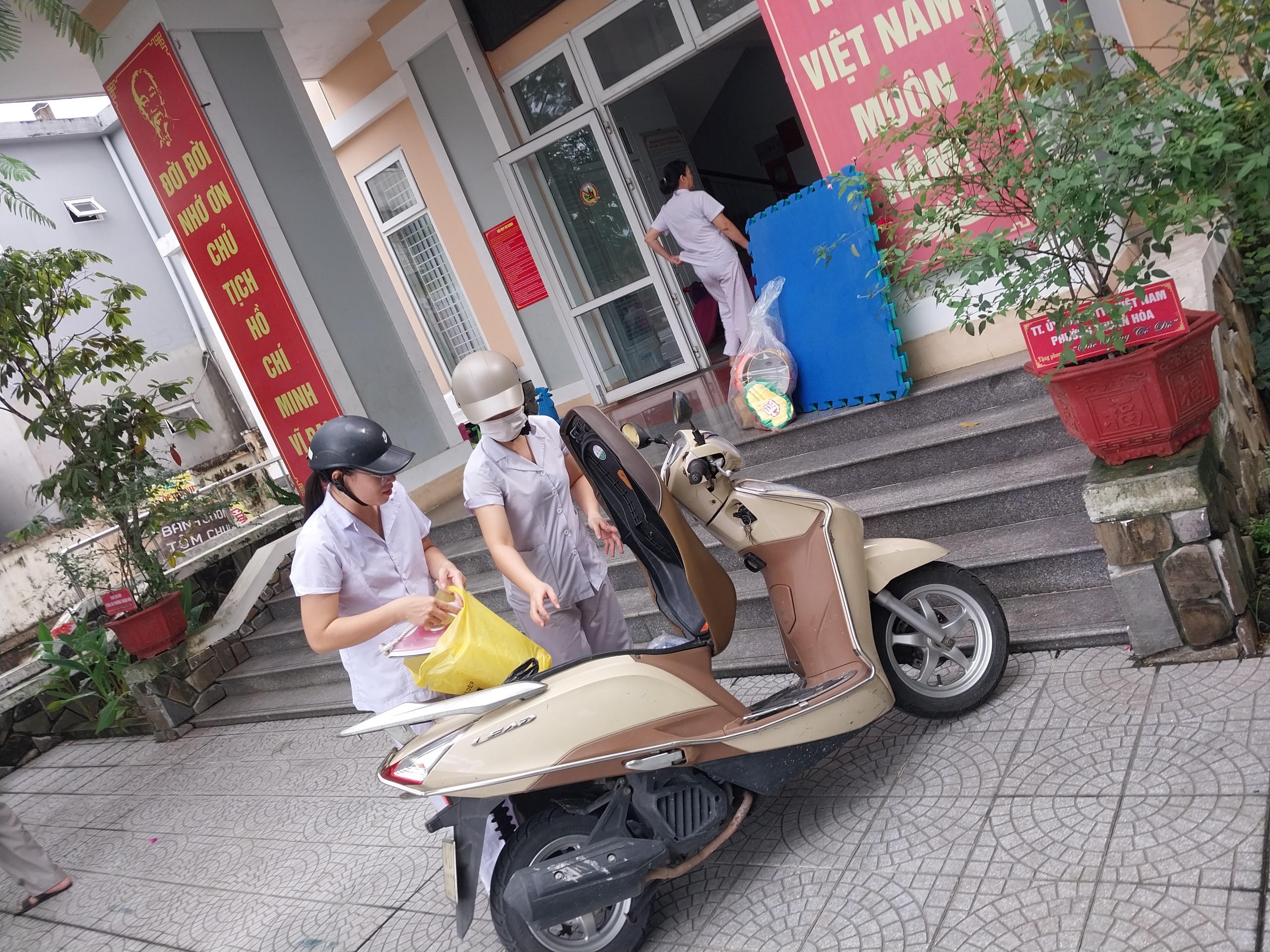 Giáo viên đem các đồ dùng thiết yếu qua trụ sở phường phục vụ cho trẻ |