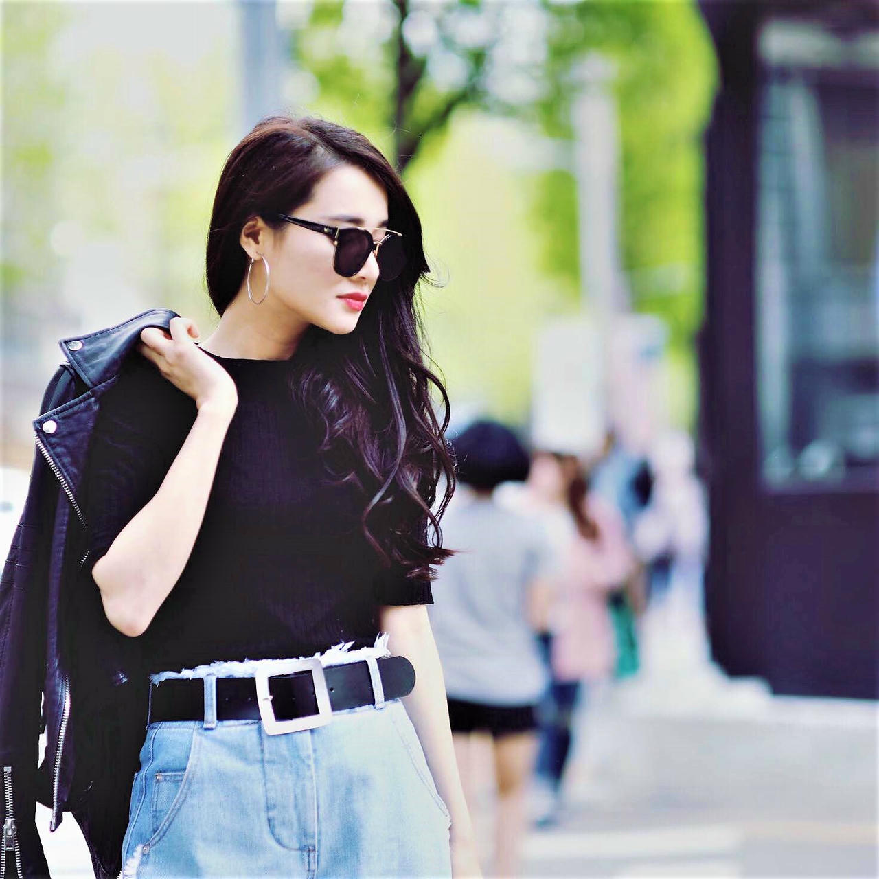 Cô nàng diễn viên trẻ Nabi Nhã Phương thoát khỏi hình ảnh nữ tính hằng ngày và gây ấn tượng cho người hâm mộ với sự cổ điển đậm phong cách thời trang của những năm 90s với áo ôm đen sơ vin quần jeans lưng cao và dây nịt bản lớn. Áo khoác bomber phủi bụi khoác một bên vai mang đến hình ảnh tự do, bất cần đầy thú vị cho cô nàng.