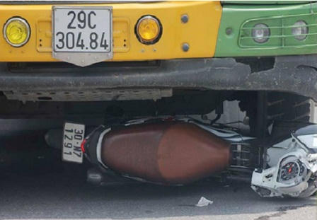 Lúc này, từ phía sau, chiếc xe tải BKS 29C 30484 không làm chủ tốc độ, đã đâm thẳng vào xe máy. Cú đâm khá mạnh khiến người điều khiển xe máy chết ngay tại chỗ. Chiếc xe máy bị kéo khoảng 50m nữa mới chịu dừng lại.