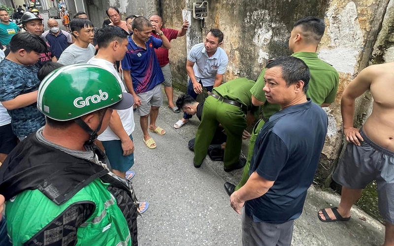Người dân cùng lực lượng Công an phường Sài Đồng khống chế, bắt giữ đối tượng ngay sau khi gây án (Ảnh: Fanpage Quận Long Biên) |