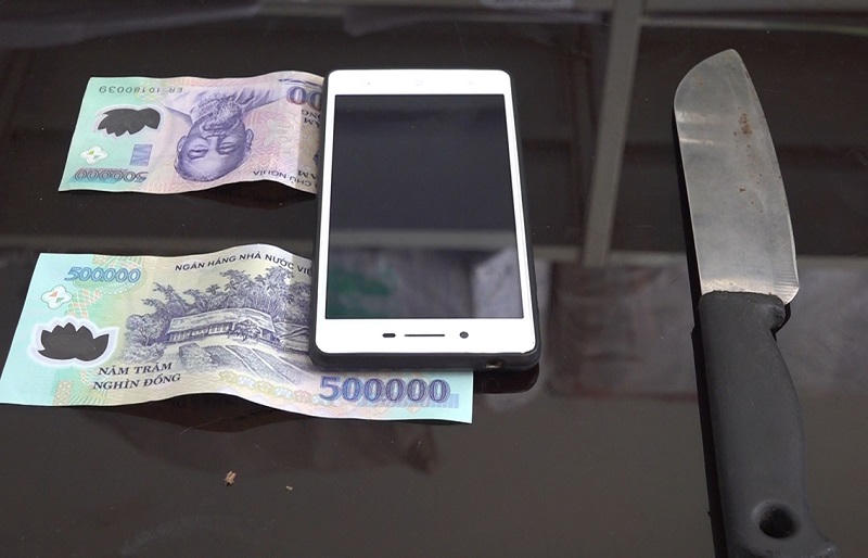 Tiến hành khám xét nơi ở của Trường, Công an đã thu giữ tang vật con dao gây án, chiếc điện thoại và 1 triệu đồng Trường cướp của ông Ý.