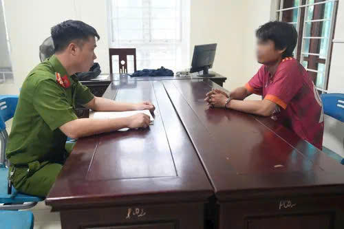 Cơ quan Công an lấy lời khai một trong các đối tượng. |