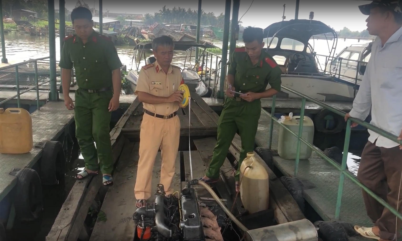 Lực lượng chức năng đã tạm giữ 01 phương tiện thủy dài khoảng 8,5m, có gắn các thiết bị chuyên dụng để bơm hút cát và 01 phương tiện thủy trọng tải 37 tấn cùng 4m3 cát vừa mới được hút trộm. Khi phát hiện Tổ công tác, đã ra hiệu lệnh dừng phương tiện để kiểm tra, nhưng các đối tượng bơm hút cát đã chống đối quyết liệt và lợi dụng trời tối, địa hình phức tạp, đã nhảy xuống sông tẩu thoát.