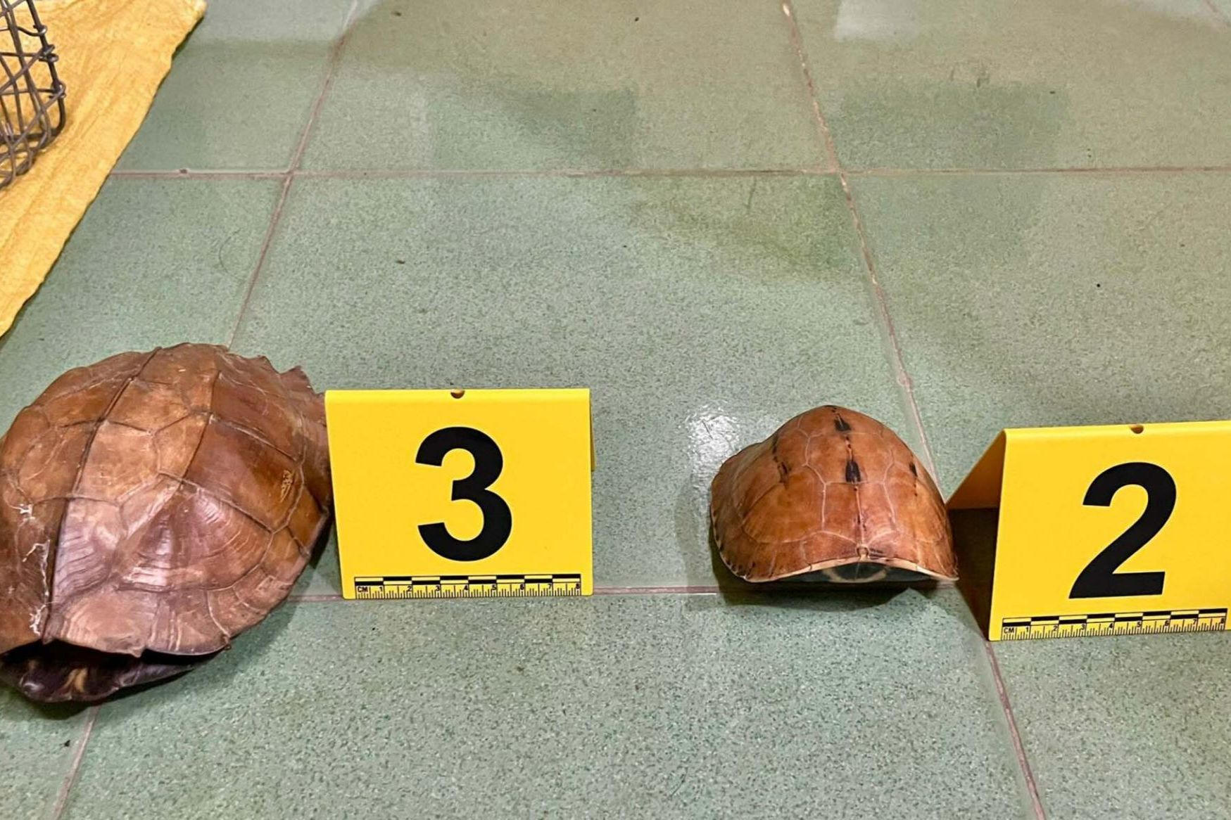 Ban chuyên án đã phối hợp với lực lượng Kiểm lâm huyện Tây Giang xác định ban đầu và tiến hành tạm giữ tang vật vi phạm gồm: 01 cá thể rùa khối lượng 0,2kg còn sống nghi là loài rùa hộp trán vàng miền Trung có tên khoa học Cuora Bourreti; 01 cá thể rùa khối lượng 0,75kg còn sống nghi là loài rùa sa nhân có tên khoa học là Cuora mouhotii; 02 cá thể chồn khối lượng 1,8kg còn sống nghi là loài chồn hương có tên khoa học là Vivericula indica.