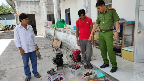 (PLVN) - Chiều 22/7, nhận được tin báo của quần chúng, Công an xã Định Thành (huyện Đông Hải, tỉnh Bạc Liêu) tiến hành vây bắt 2 đối tượng đang sử dụng phương tiện thủy để kích điện cào bắt cá trên sông.