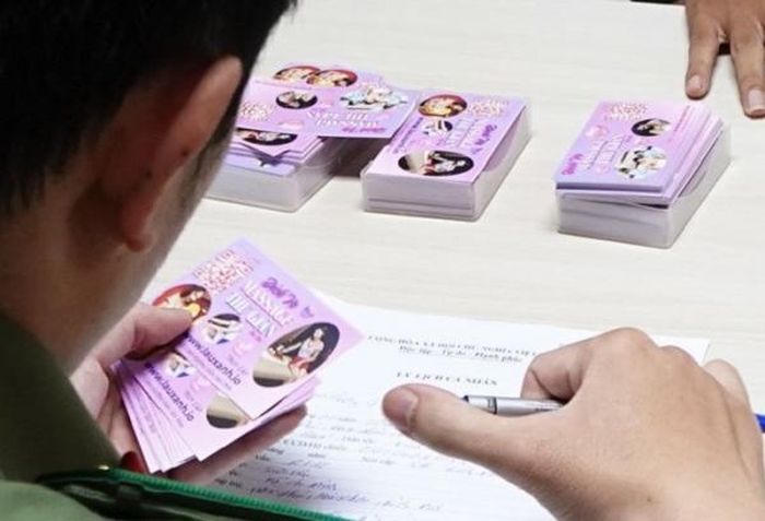 Khoảng 16h cùng ngày, lực lượng trinh sát kiểm tra phòng trọ của P.L.G.B và P.V.T (cùng SN 2003, quê quán Bình Định) trên đường Hà Huy Tập (TP Đà Lạt). Tại đây, lực lượng chức năng phát hiện 2 đối tượng mang theo hàng nghìn tờ rơi có chứa nội dung khiêu dâm và hướng dẫn cách sử dụng dịch vụ "massage thư giãn tận nơi, hẹn hò tình cảm" bằng cách truy cập vào đường link website, quét mã QR...