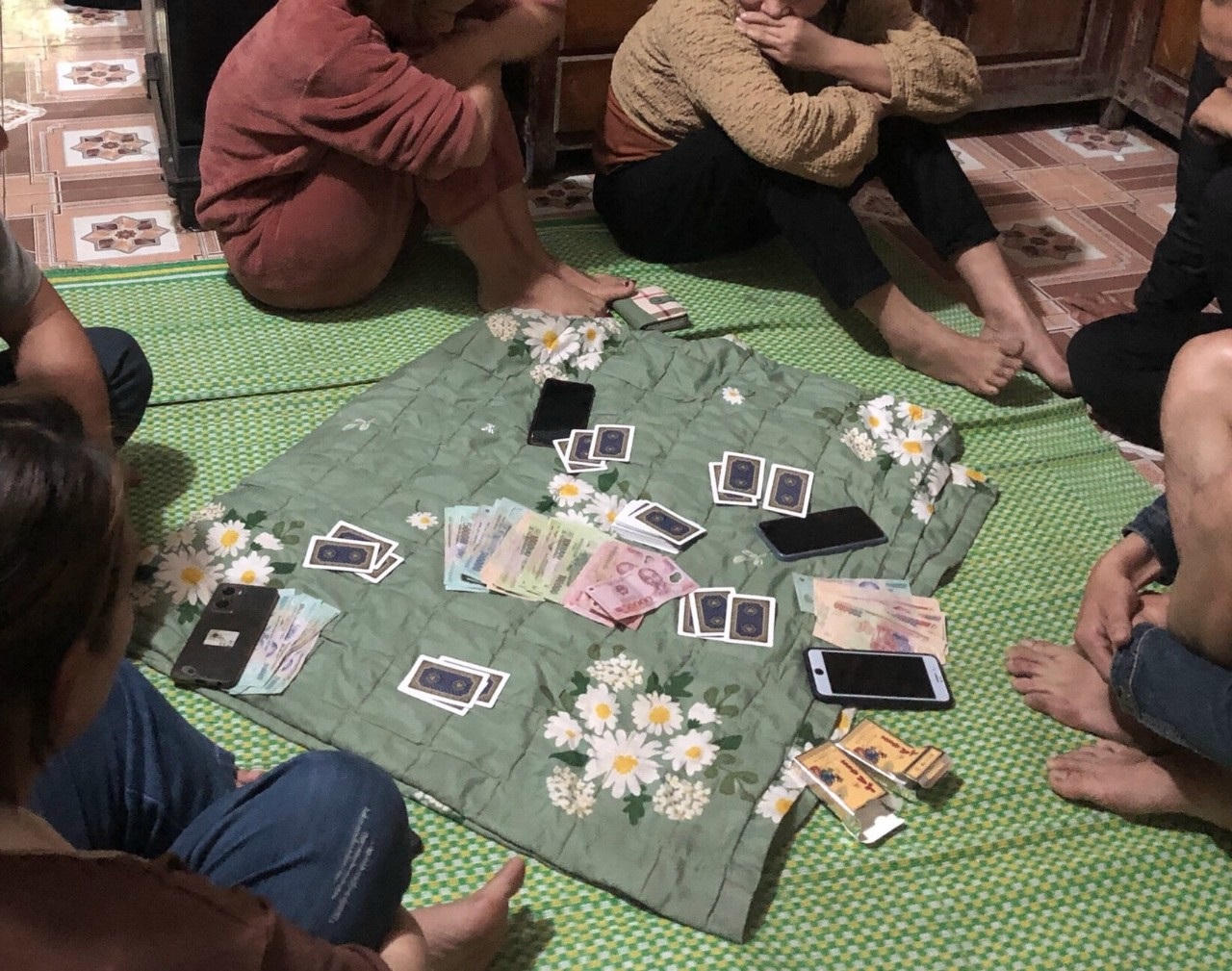 Tại thời điểm bắt quả tang, lực lượng chức năng thu giữ trên chiếu bạc số tiền 9.600.000 đồng, 2 bộ bài tú lơ khơ, 4 điện thoại di động.
