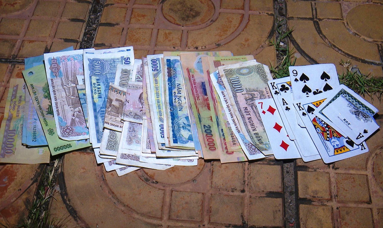 Tại hiện trường, lực lượng Công an thu giữ nhiều lá bài tây đã qua sử dụng, số tiền hơn 1.000.000 đồng cùng một số tang vật khác có liên quan.