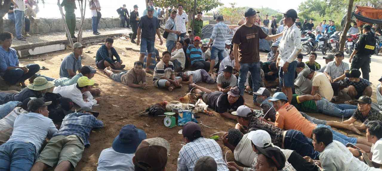 Tại hiện trường, lực lượng chức năng tiến hành mời làm việc 75 đối tượng. Các tang thu giữ gồm gồm: 5 con gà trống, 1 cặp cựa, 1 cân đồng hồ, 1 tấm kính dùng để nhử gà. Ngoài ra, lực lượng chức năng cũng tạm giữ 54 điện thoại di động, 52 xe mô tô các loại, hơn 210 triệu đồng.
