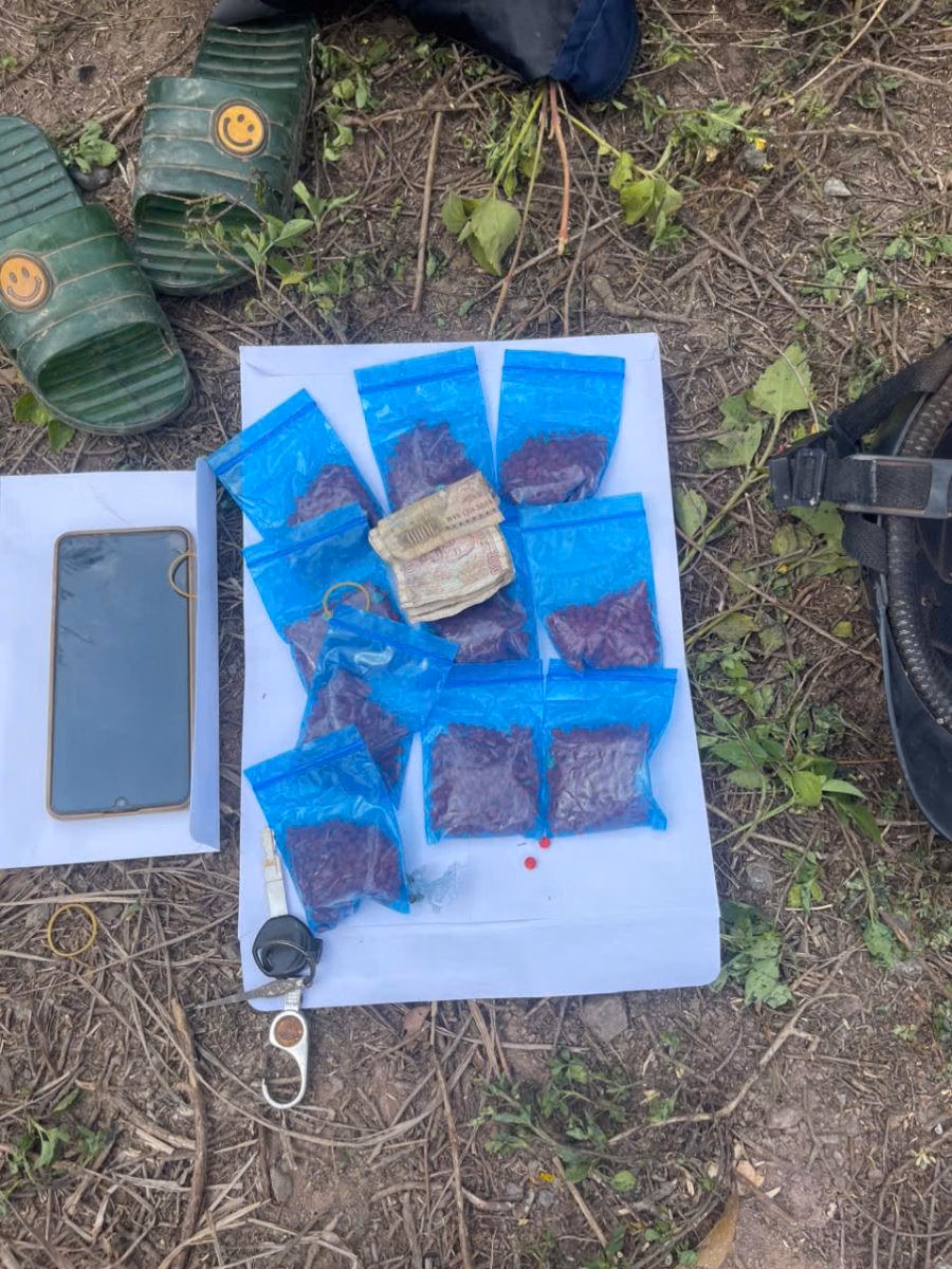 Vật chứng thu giữ tại chỗ gồm: 10 túi hồng phiến (tương đương 2.000 viên), 01 điện thoại di động và 01 xe mô tô.