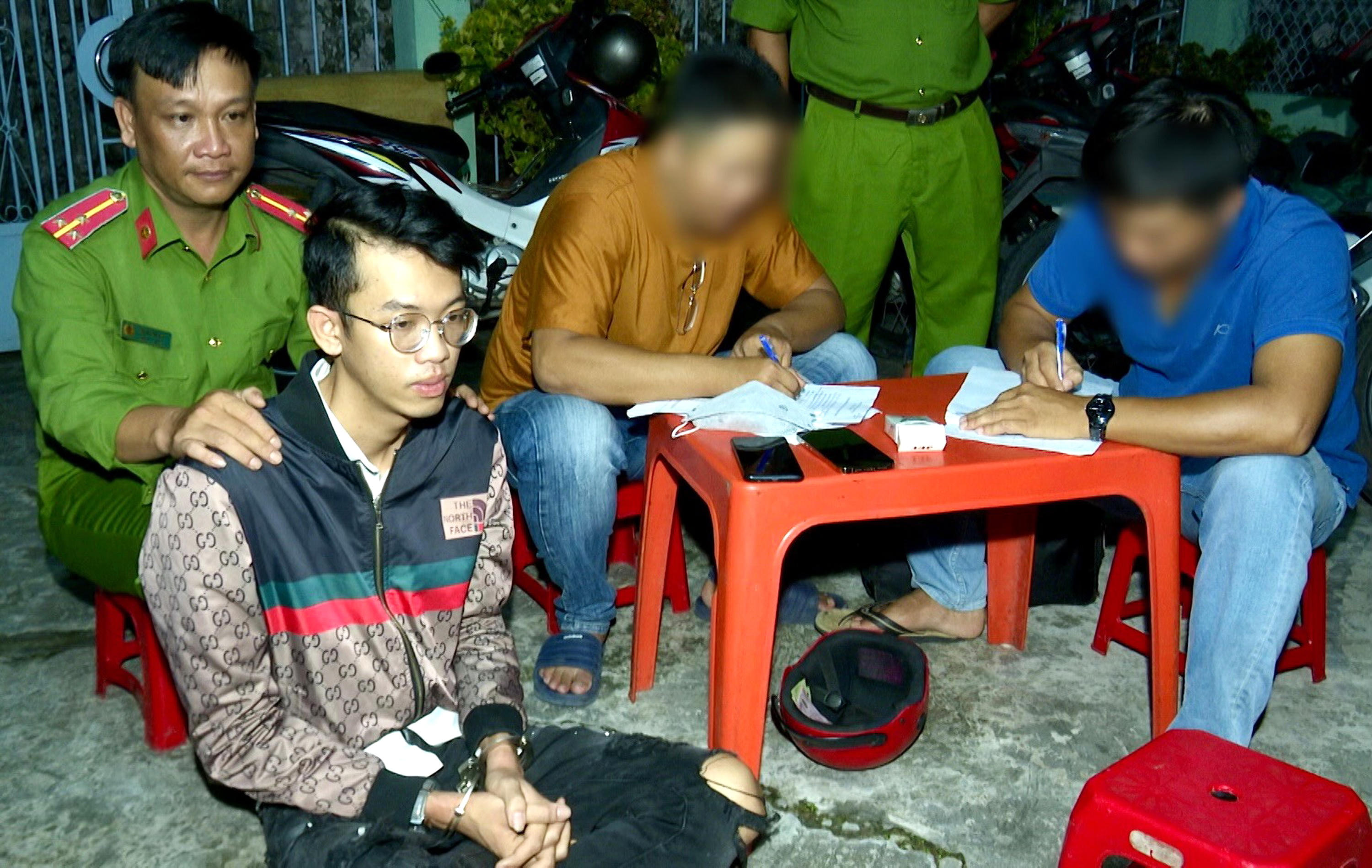 Đối tượng Huỳnh Quốc Cường bị lực lượng Công an bắt quả tang. |