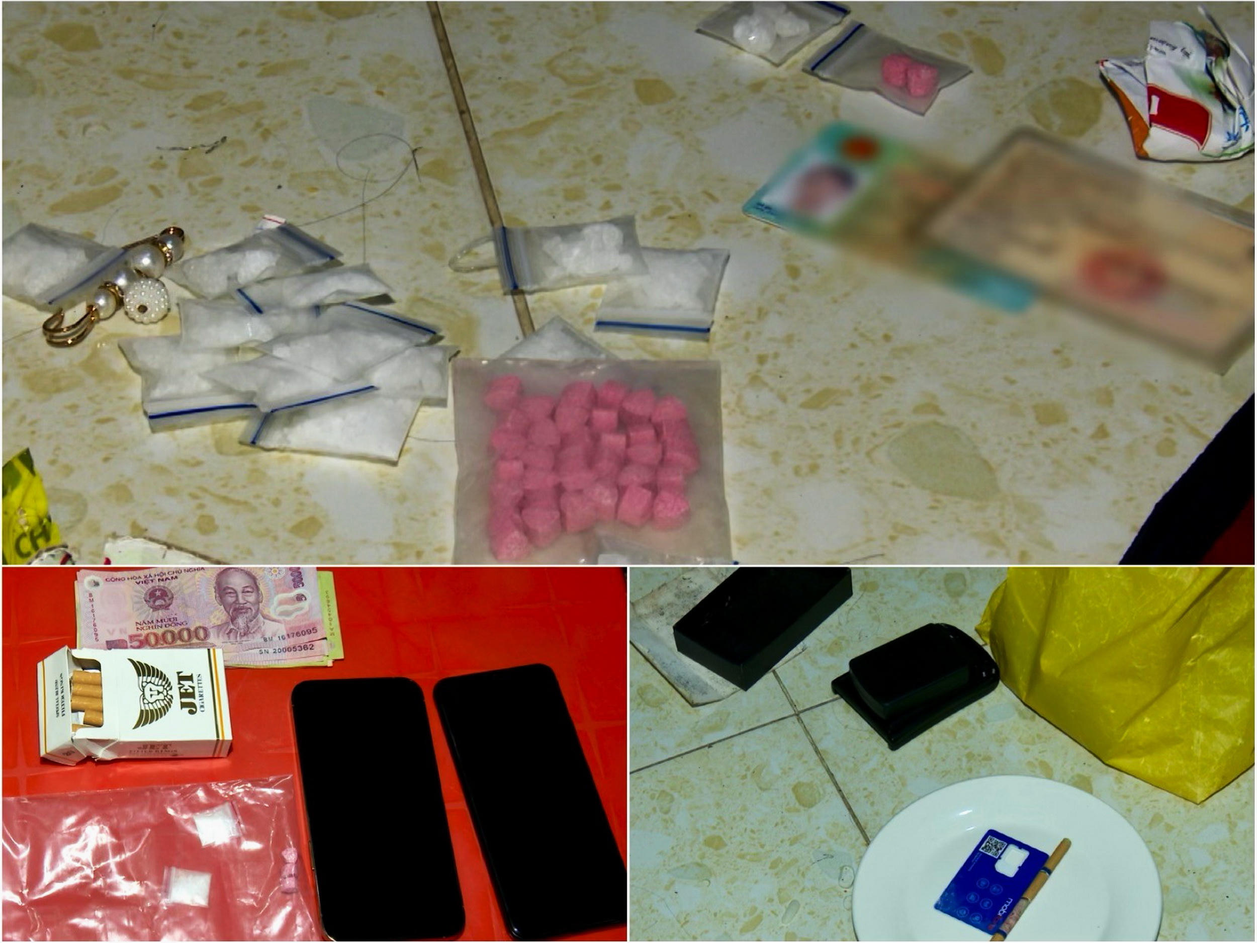 Đồng thời, lực lượng chức năng tiếp tục khám xét căn phòng trọ mà đối tượng Cường đang ở tại địa chỉ trên và phát hiện và thu giữ 17 gói nilong chứa các hạt tinh thể màu trắng, 36 viên nén màu đỏ nghi là các chất ma túy; 02 cân điện tử; 01 bộ dụng cụ sử dụng ma túy và một số tang vật khác có liên quan.