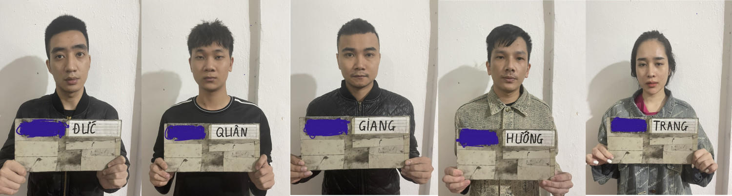 Các đối tượng gồm: Nguyễn Minh Đức (SN 1994, trú tại phường Việt Hưng, TP Hạ Long); Đinh Văn Quân (SN 2001, trú tại phường Hải Yên, TP Móng Cái); Nguyễn Trường Giang (SN 1993, trú tại phường Mạo Khê, TX Đông Triều); Bùi Văn Hướng (SN 1993, trú tại xã Tiên Lãng, huyện Tiên Yên); Đặng Thị Quỳnh Trang (SN 1999, trú tại xã Yên Than, huyện Tiên Yên).