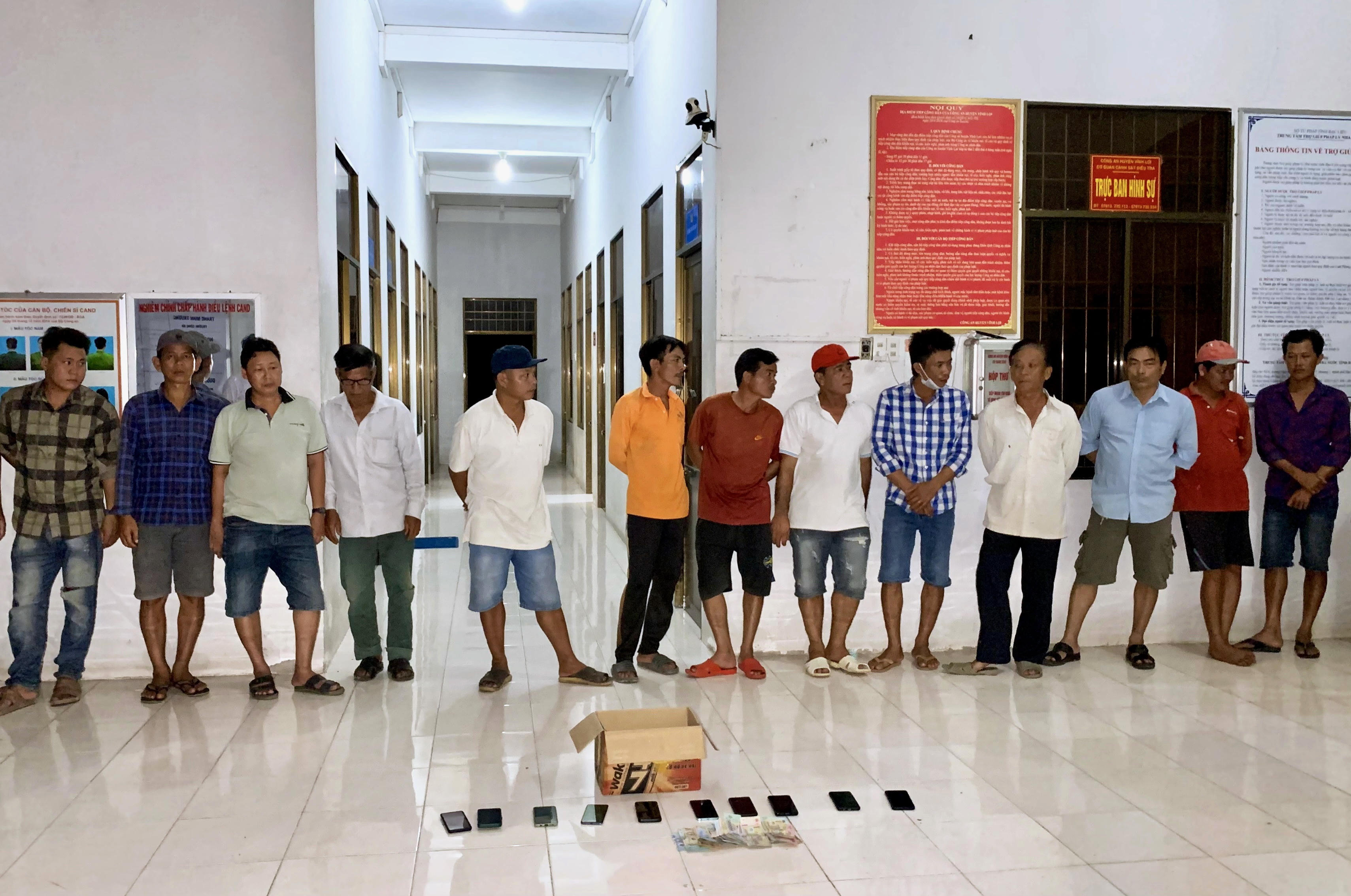 Theo đó, vào khoảng 16 giờ ngày 13/10, qua công tác nắm tình hình, Cảnh sát hình sự Công an huyện Vĩnh Lợi (tỉnh Bạc Liêu) bắt quả tang 13 đối tượng đang tham gia đánh bạc dưới hình thức đá gà ăn tiền qua mạng internet tại một quán cà phê trên địa bàn ấp Thạnh Hưng 1, xã Vĩnh Hưng, huyện Vĩnh Lợi.