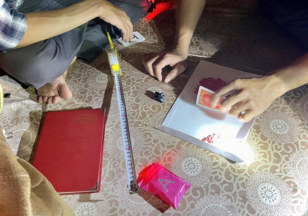Tiến hành khám xét khẩn cấp chỗ ở của các đối tượng, thu giữ thêm 195 viên nén hình tròn, dạng thuốc tân dược. Các đối tượng khai nhận số viên nén trên là ma túy mua về cất giấu để bán cho các con nghiện trên địa bàn.