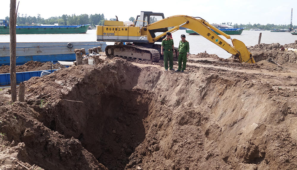 Trước đó, khoảng 09 giờ ngày 25/12/2020, tại khu vực ấp Long Hòa, xã Long Giang, huyện Chợ Mới, tỉnh An Giang, Tổ công tác của Phòng Cảnh sát phòng, chống tội phạm về môi trường Công an tỉnh tiến hành kiểm tra, phát hiện bắt quả tang Nguyễn Phương Linh, sinh năm 1979, trú tại xã Qưới An, huyện Vũng Liêm, tỉnh Vĩnh Long, điều khiển máy múc đất (Kobe) hiệu Hitachi, không số, đang múc đất lên 03 xe cải tiến.