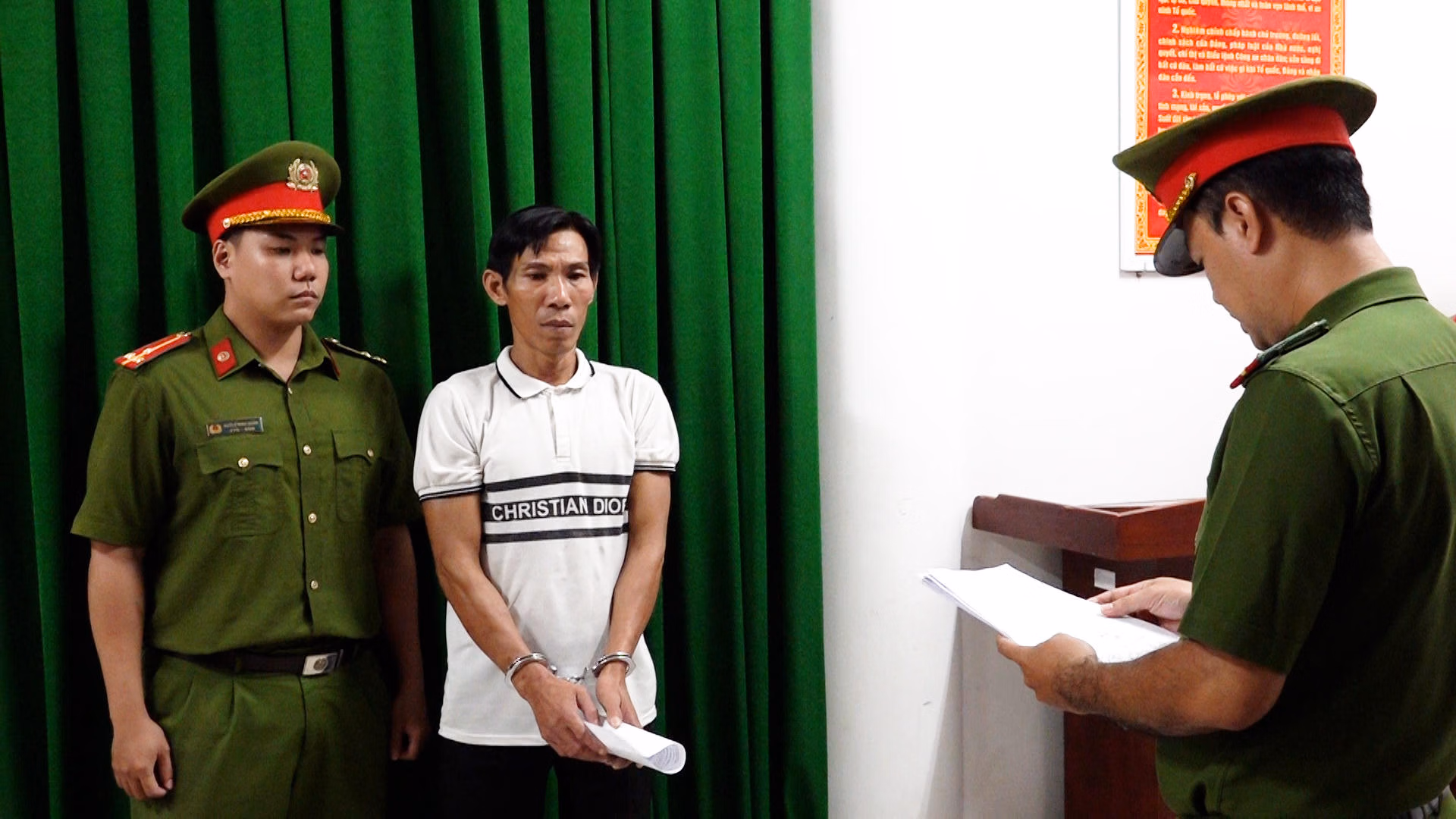 Công an tỉnh Khánh Hòa đã thực hiện lệnh bắt tạm giam đối với 2 đối tượng về hành vi "Chống người thi hành công vụ", liên quan đến vụ việc một cán bộ công an xã hy sinh trong khi làm nhiệm vụ.