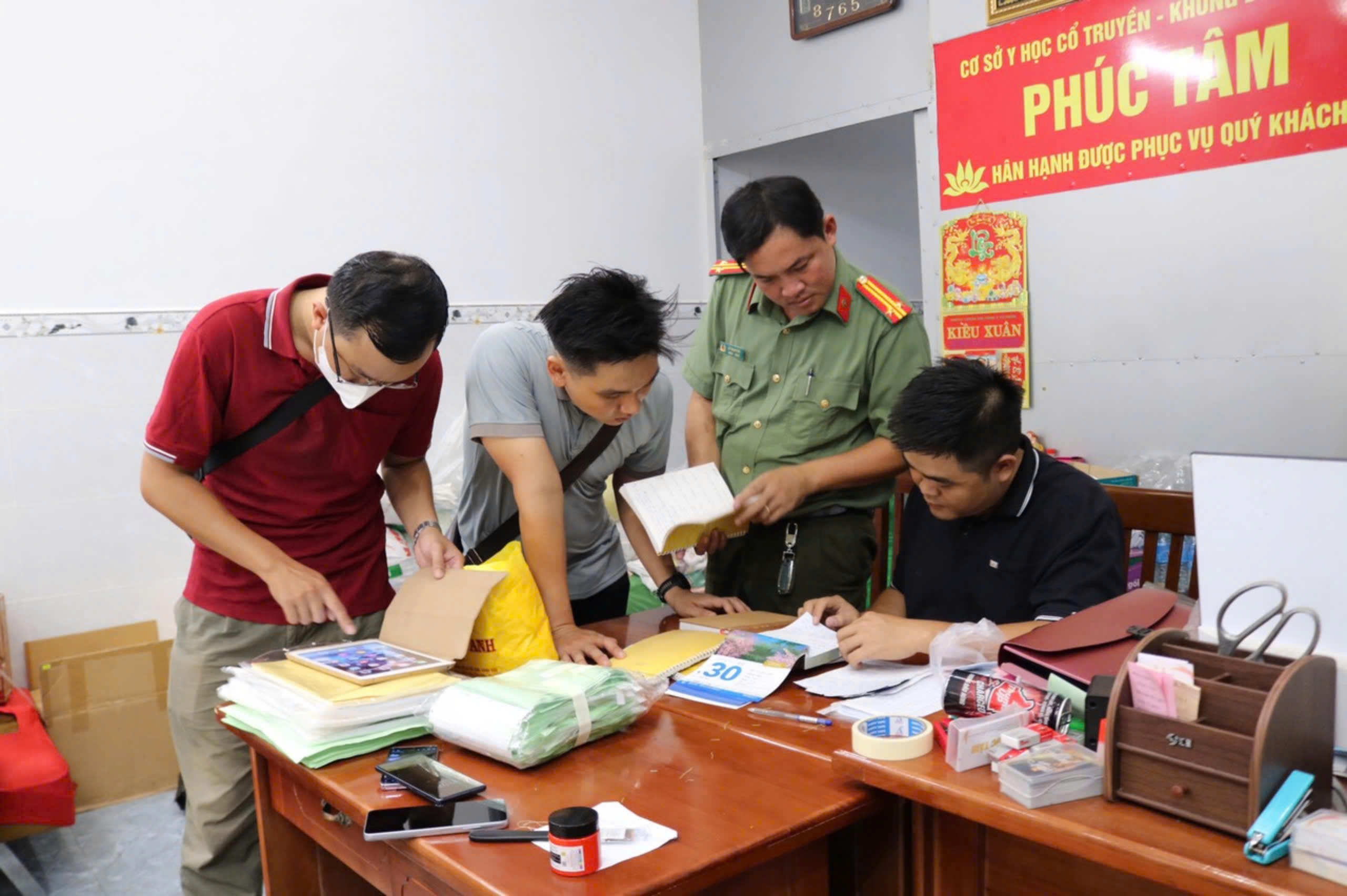 Khám xét nơi ở của Châu cơ quan công an thu giữ nhiều tài liệu đồ vật phục vụ công tác điều tra. |