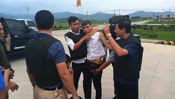 Bằng các biện pháp đấu tranh, vừa vận động thuyết phục, vừa áp sát để khống chế các đối tượng, đến 16h30, đối tượng Nguyễn Anh Tuấn (SN 1991, trú tại xã Kim Liên, huyện Nam Đàn, Nghệ An) mở cửa xe, ra ngoài xin đầu thú. Đến khoảng 19h15 tối cùng ngày đối tượng còn lại là Nguyễn Thành Trung (SN 1987, trú tại xã Sơn Tây, huyện Hương Sơn, Hà Tĩnh) đã buông vũ khí, đầu hàng. Được biết, Trung là kẻ bị nhiễm HIV từng có 1 tiền án 9 năm tù về tội tàng trữ trái phép chất ma túy.