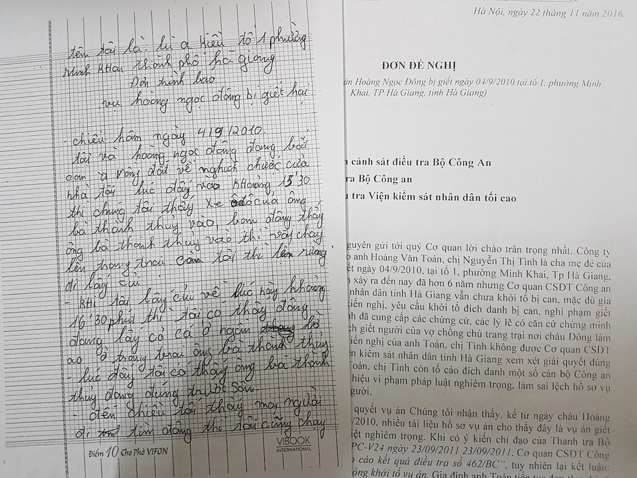 Trong nhiều năm qua, anh Hoàng Văn Toản nhiều lần gửi đơn kêu cứu đến các cơ quan chức năng trong tỉnh Hà Giang, Bộ Công an, Viện KSND TC đề nghị Cơ quan CSĐT Bộ Công an trực tiếp điều tra vụ án. Anh Toản còn cho rằng có dấu hiệu Cơ quan CSĐT Công an tỉnh Hà Giang cố tình bao che, bỏ lọt tội phạm, làm sai lệch hồ sơ vụ án.