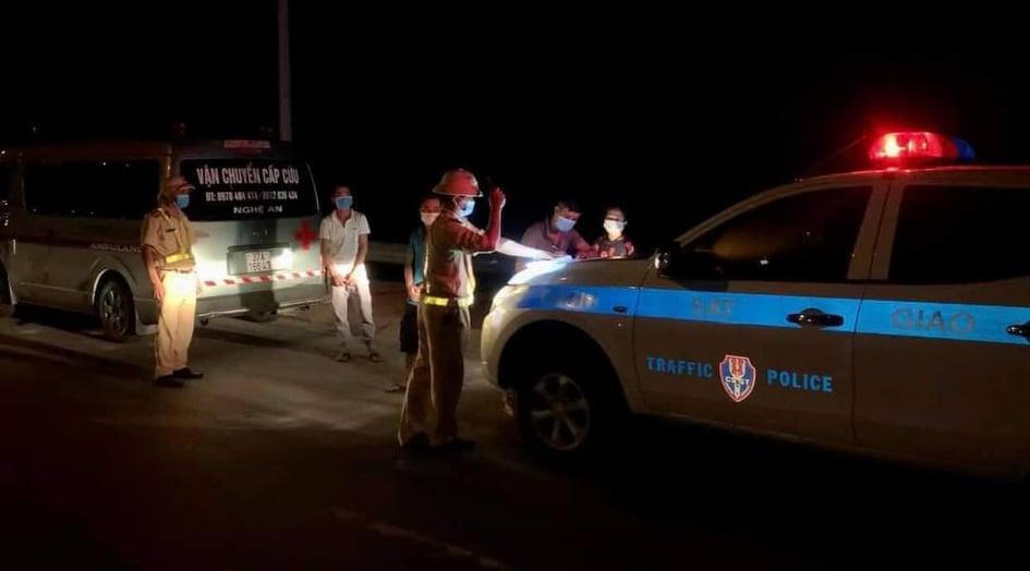Thời điểm trên, tổ tuần tra cơ động số 1 phối hợp với chốt kiểm soát số 7, Công an TP Vinh, đang làm nhiệm vụ kiểm soát phòng, chống dịch COVID-19 tại đường 72m, đoạn giáp ranh giữa địa phận xã Hưng Đông (TP Vinh) với xã Hưng Tây (huyện Hưng Nguyên) thì phát hiện ô tô cứu thương bật đèn tín hiệu ưu tiên, đi hướng lên huyện Hưng Nguyên.
