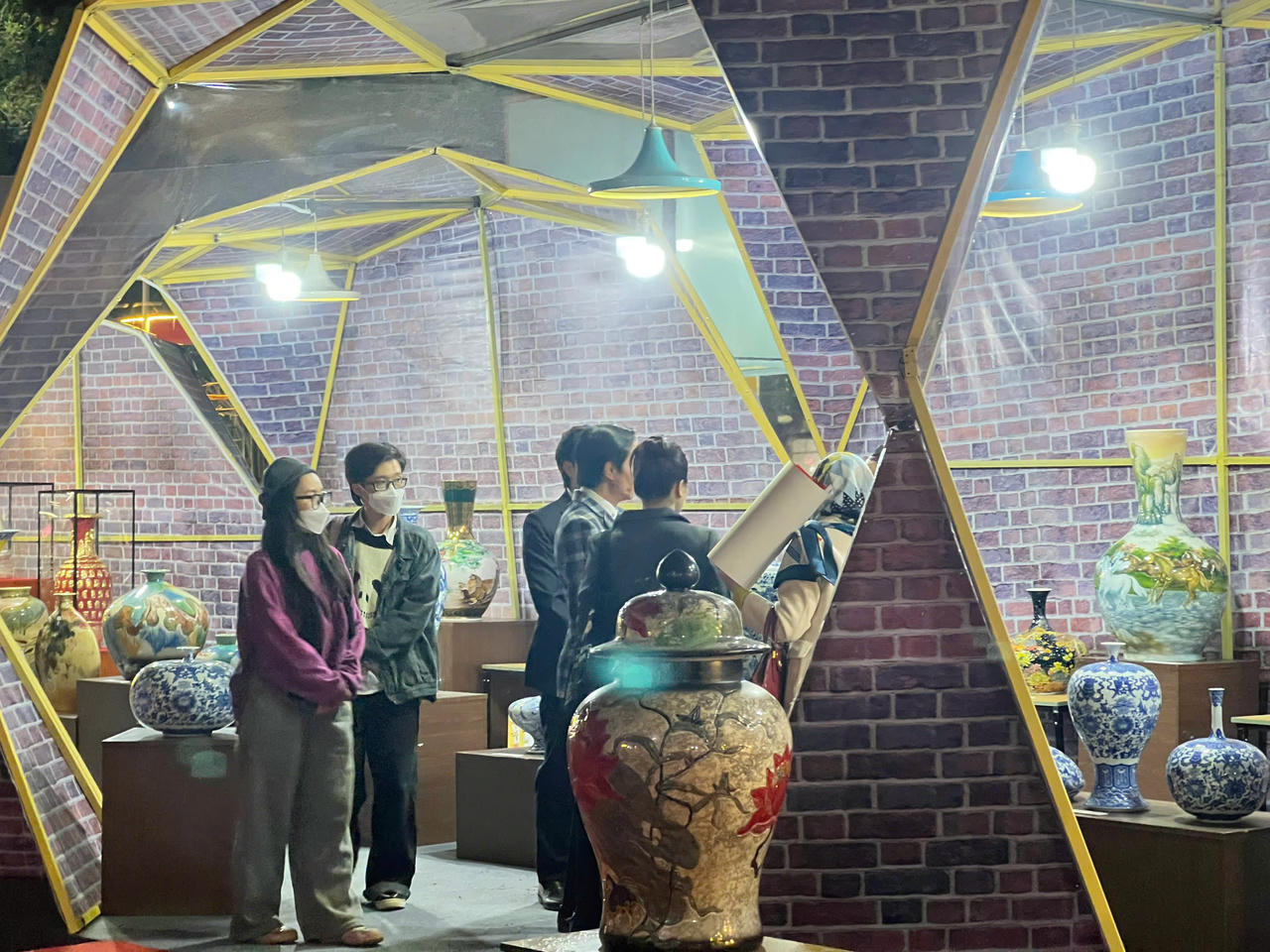 Sự kiện trưng bày gồm nhiều không gian, như: Lụa Vạn Phúc, gốm Bát Tràng; không gian lụa và gốm của các nghệ nhân quốc tế... |